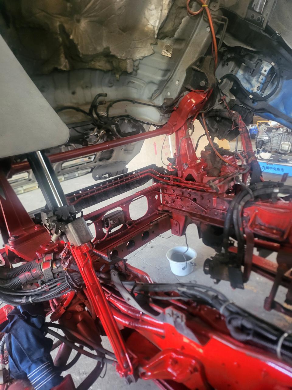 内張り張り替えに箱載せかえ中